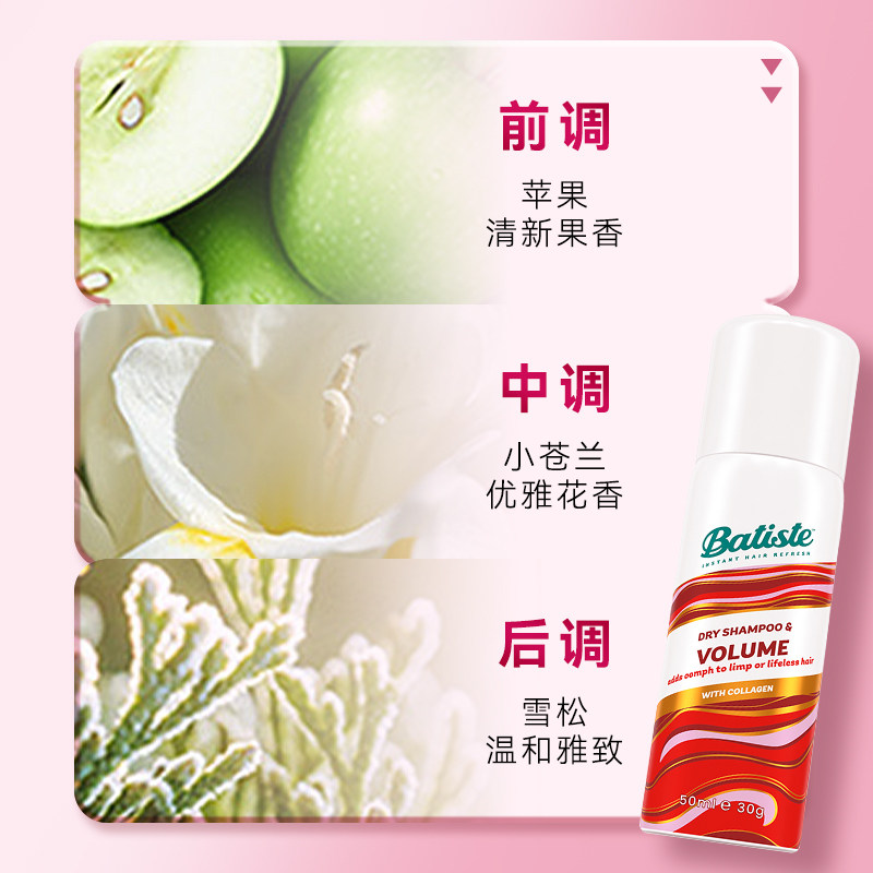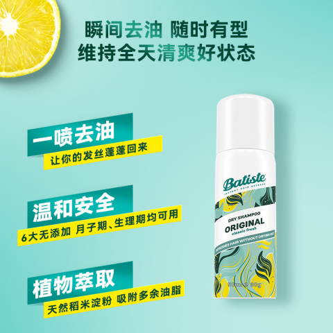 清新控油,蓬松一整天!Batiste碧缇丝免水洗干发喷雾100ml,快速吸收不油腻,让头发瞬间变得丰盈有型,日常护理必备!