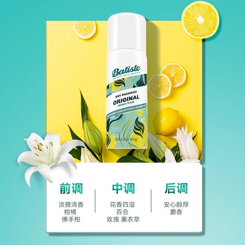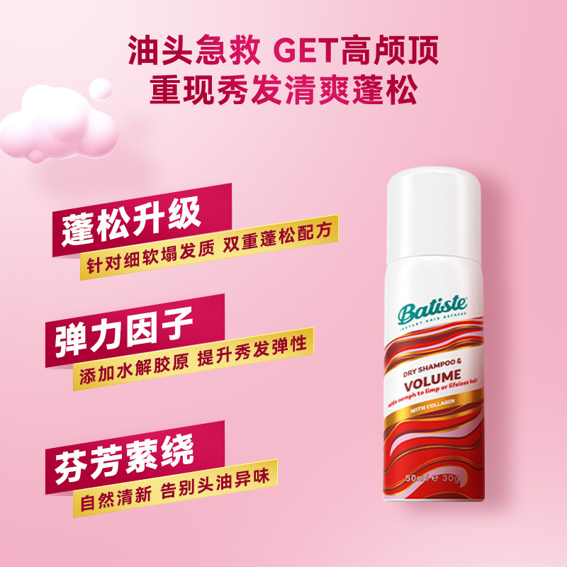 59( HU287 qQ1J5bj9VOe) https://m.tb.cn/h.iSBdgvB Batiste碧缇丝经典洁净丰盈蓬松免水洗干发喷雾控油100ml