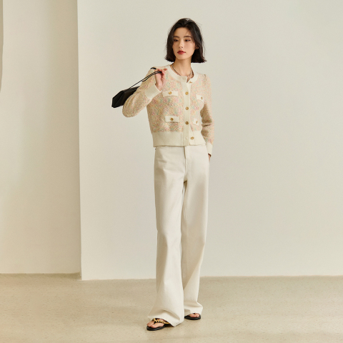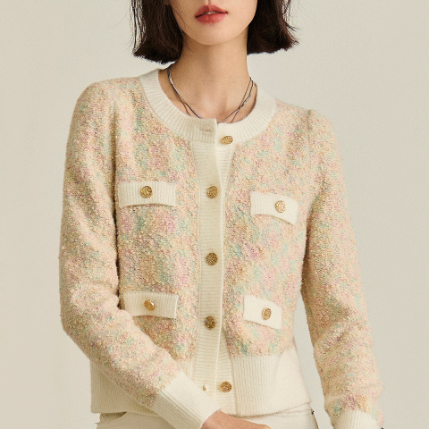 97( CZ321 Y1WZ5bEi6qy) https://m.tb.cn/h.i7Bqz0W LILY2026春新款复古小香风修身气质通勤圆领针织开衫短外套女短款