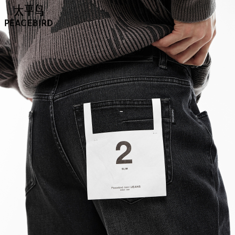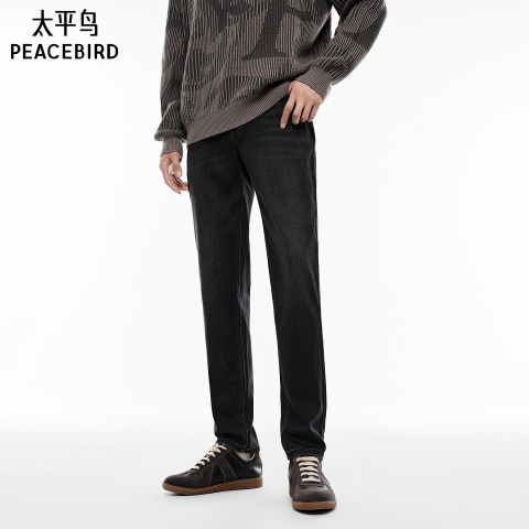 【魔塑弹】太平鸟男装牛仔裤春秋经典新款复古水洗耐磨牛仔裤