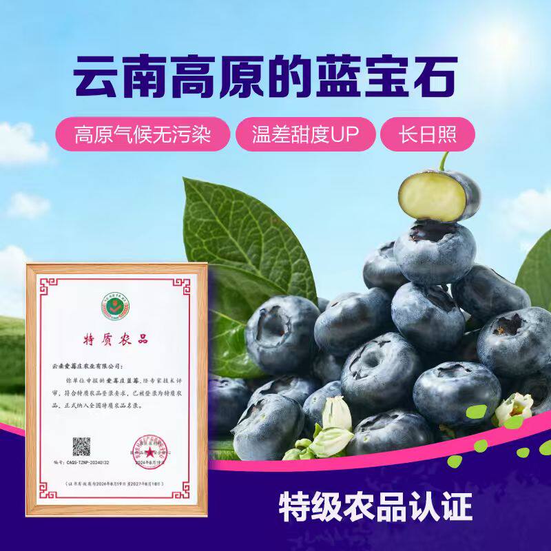 爱莓庄精选大果云南高山蓝莓鲜梗蓝莓脆甜新鲜125g/盒18mm+