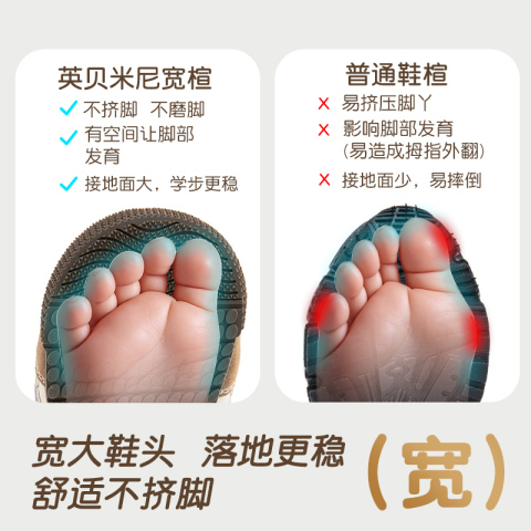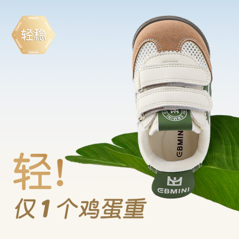 英贝米尼学步鞋专为0-3岁宝宝设计!超软硅胶防滑底+透气网布,轻盈如无物,稳稳迈出人生**步~155.9元享国际母婴认证品质!高弹力后跟杯+加宽前掌空间,科学护足不挤脚,春夏季清爽不闷汗!小脚丫的舒适