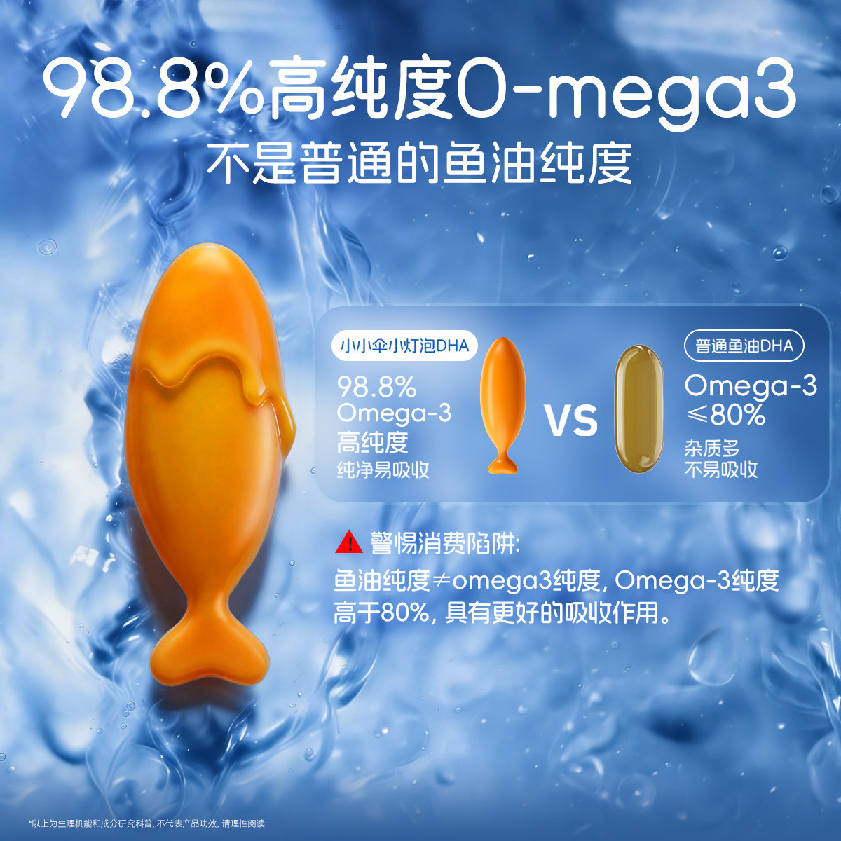 【叠消费卷淘金币折合257】,【新升级】小小伞小灯泡DHA鱼油儿童青少年备考专用学习记忆力