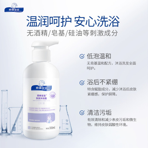 满200-25凑单到手价80赠500ml洗衣液+同款小样2g*2,顺峰宝宝儿童洗发沐浴露,pH5.5弱酸亲肤配方,0酒精/0色素/0香精,低泡温和不刺激,宝宝娇嫩肌安心之选~80元享300ml大容量!专为婴幼儿研发,舒缓清洁二合一,日常洗护更省心更划算!给宝宝的每日温柔呵护,现在就能安排!