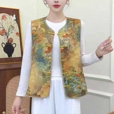女装新款妈妈中式国风气质马甲时尚复古休闲背心盘扣无袖上衣