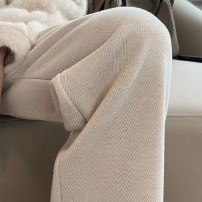 【外贸撤柜100%正品】羊毛呢高档阔腿裤女人字纹宽松垂感休闲裤
