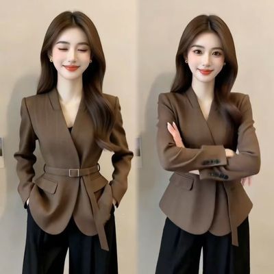 高级感腰带装饰职业西服外套女2026春季新款复古通勤收腰显瘦西装【7天内发货】