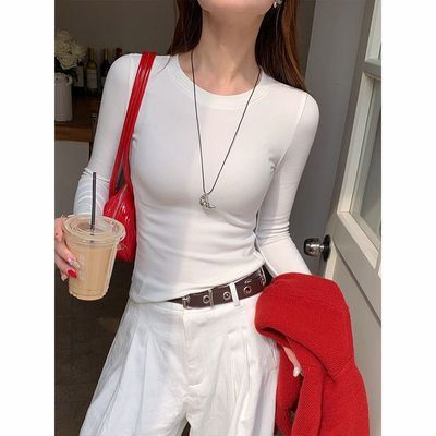 德绒圆领打底春秋冬季新款长袖修身T恤女修身纯色磨毛洋气上衣ins