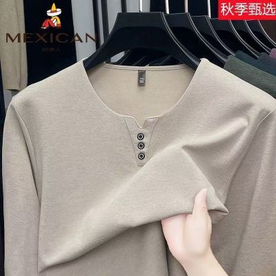 稻草人春秋季男士V领纯色潮流休闲T恤上衣男装打底体恤宽松长袖潮