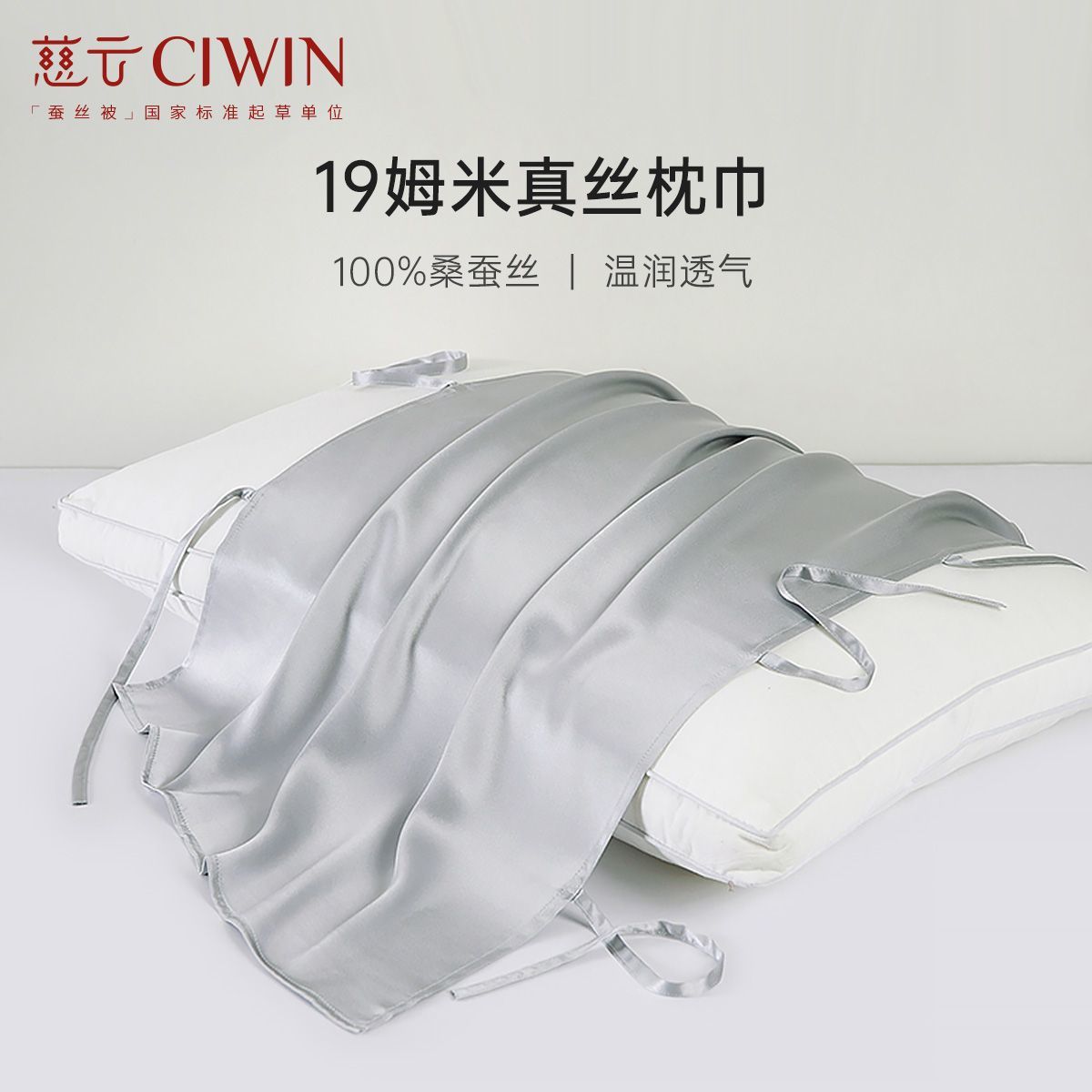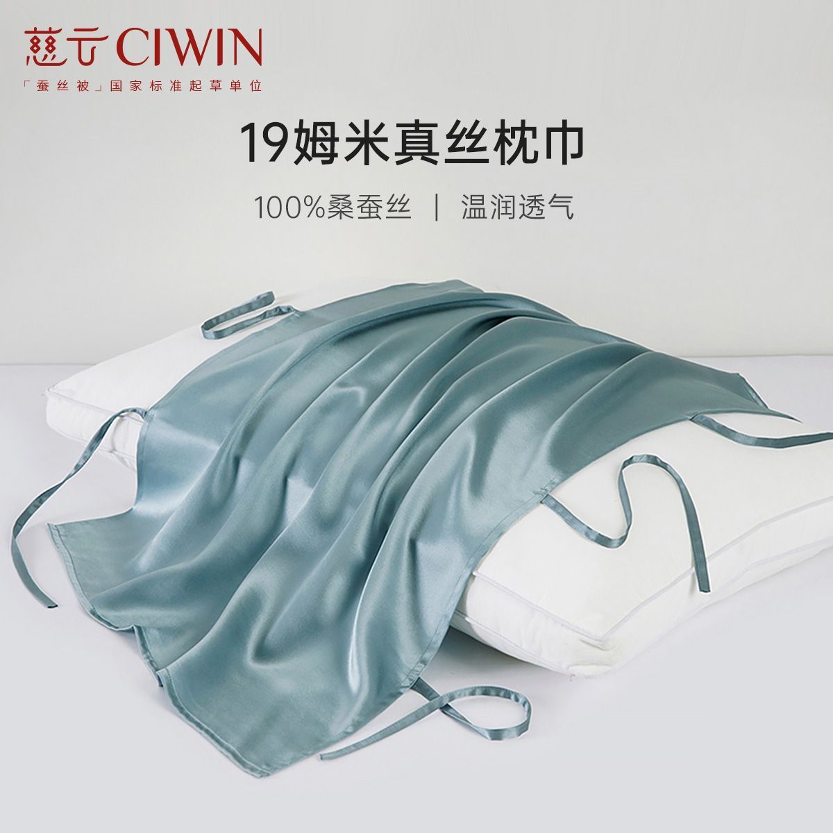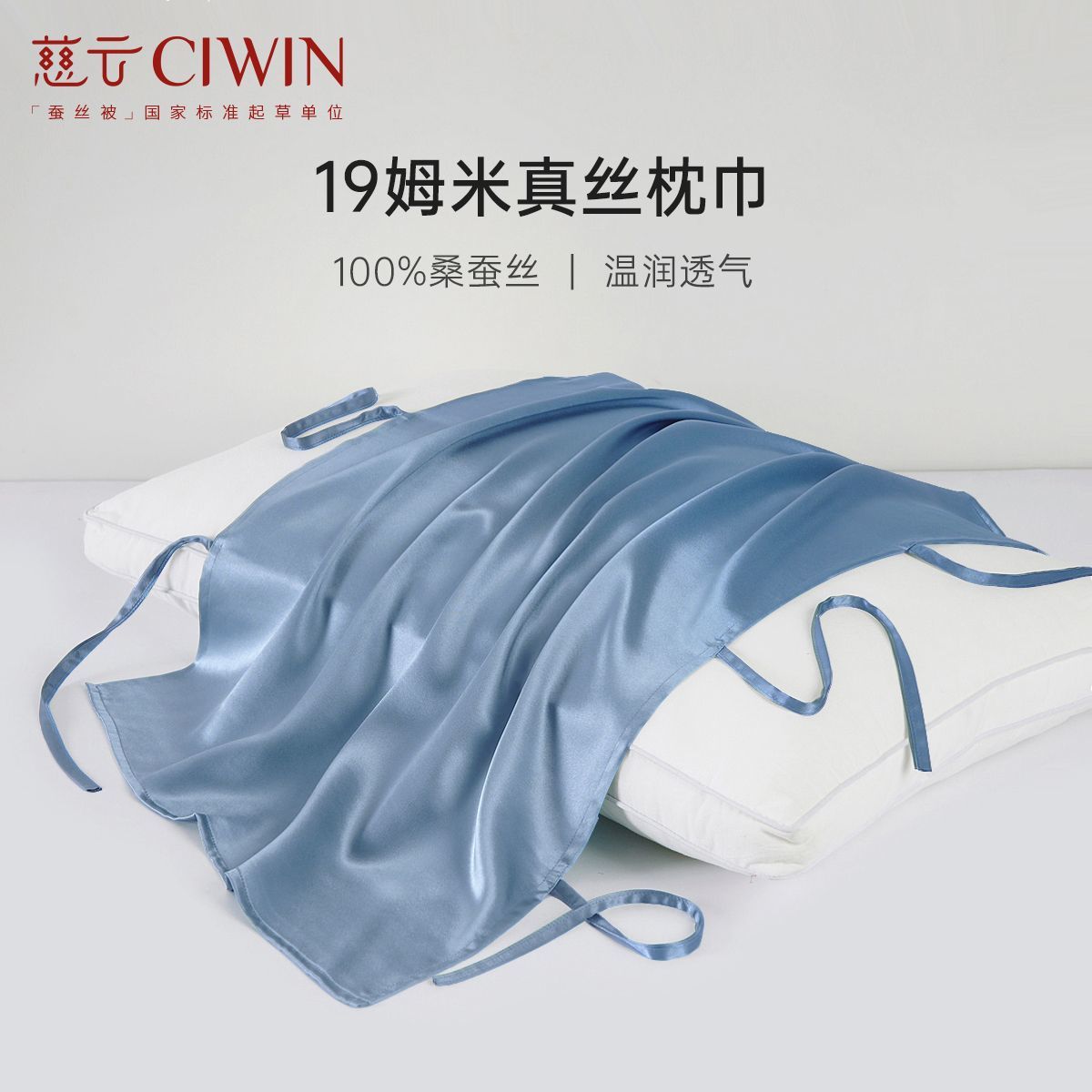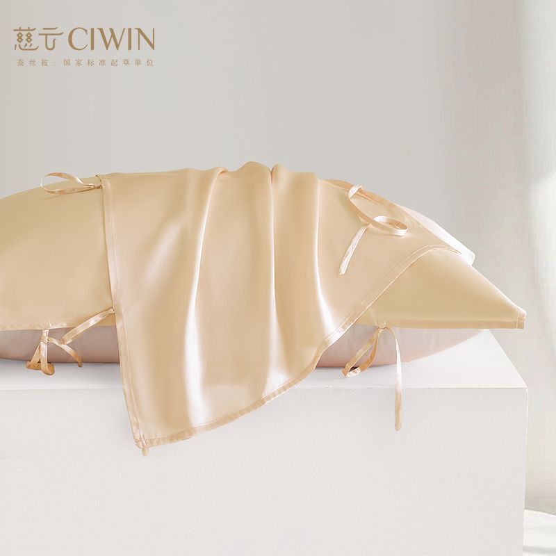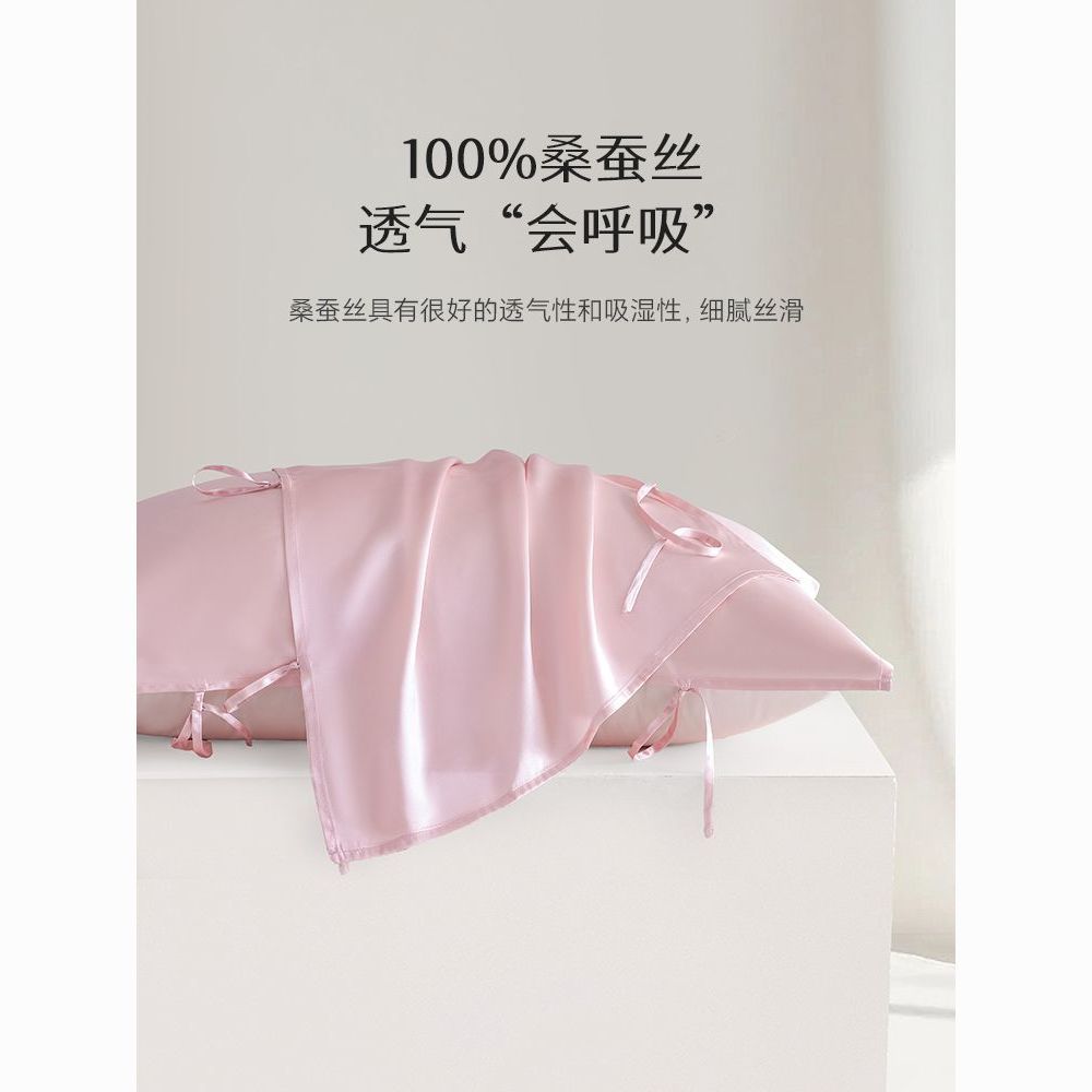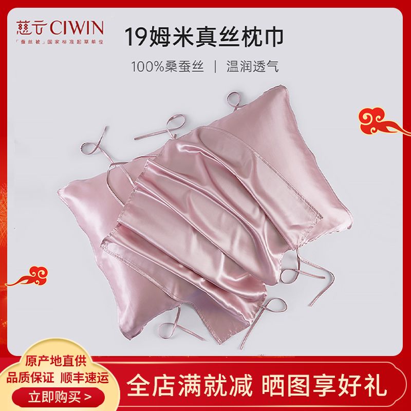 慈云100%全桑蚕丝真丝枕巾纯色重磅加厚19姆米丝绸单人出差酒店