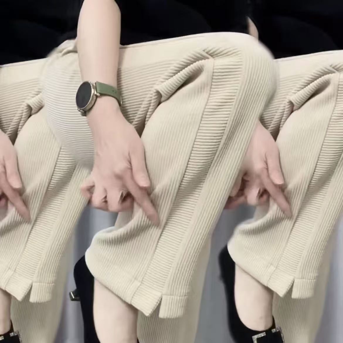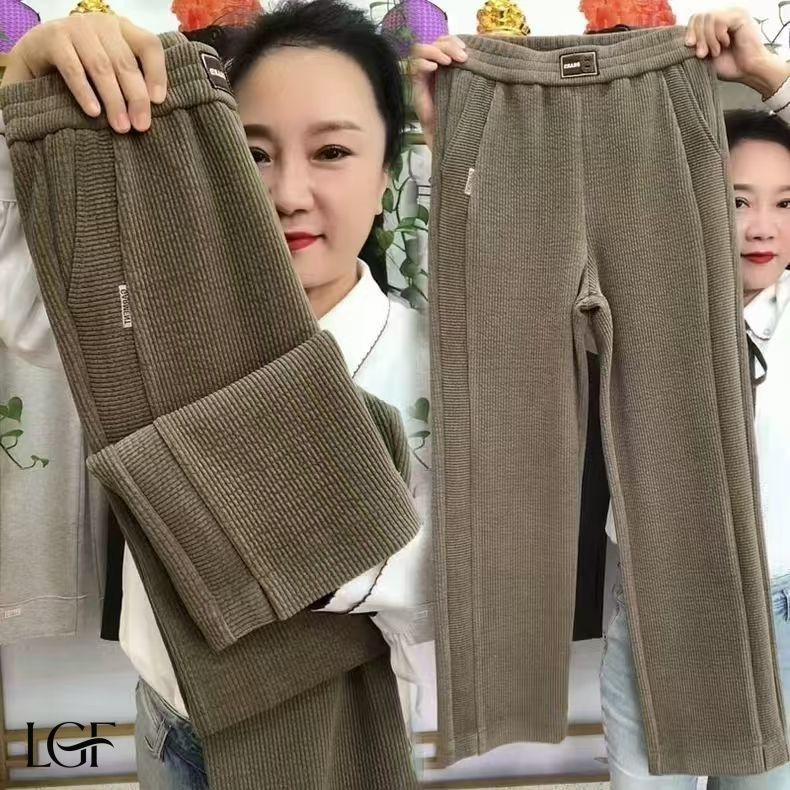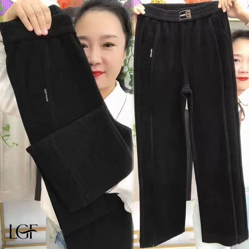 直筒裤新款2026春夏休闲裤欧条绒面料洋气时尚百搭宽松高腰裤子