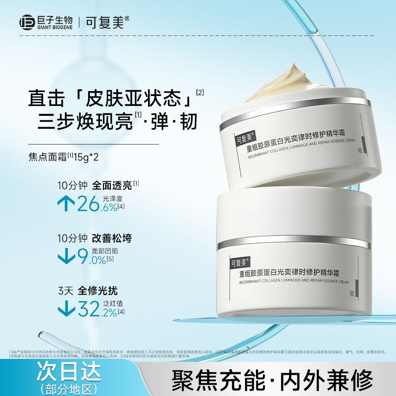 官方正品】可复美焦点面霜重组胶原蛋白光奕律时修护精华霜15g*2